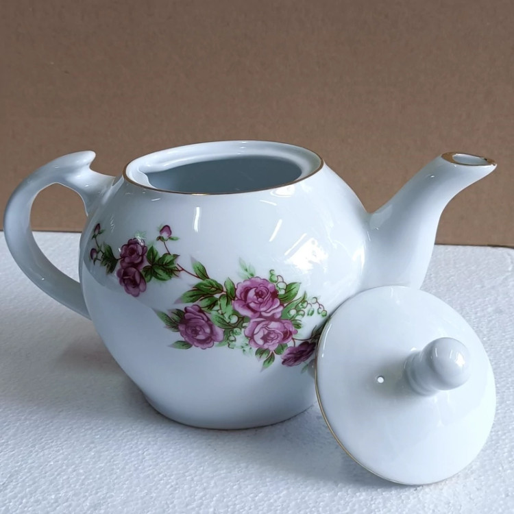 قوری چینی گلسرخی سایز بزرگ ساخت کارخانجات چینی تقدیس