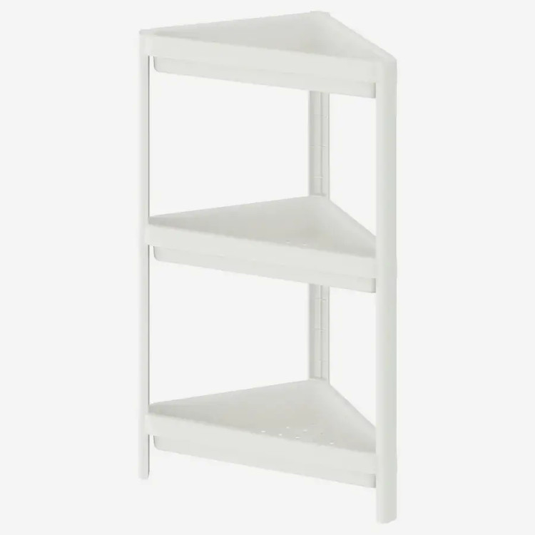 یک شلف ایده آل برای هر حمام. شلف حمام سفید ایکیا IKEA-VESKEN سفید رنگ و از جنس پلاستیک پلی پروپیلن است. ابعاد این شلف برای هر حمامی مناسب است و فضایی برای نگهداری انواع شوینده و وسایل مورد نیاز در حمام فراهم میکند. قفسه های این شلف به راحتی مونتاژ میشوند و دوباره جمع میشوند. لبه های بلند قفسه نمیگذارند چیزی از شلف بیرون بیفتند و سوراخ های کف آن آب اضافی را تخلیه میکنند.