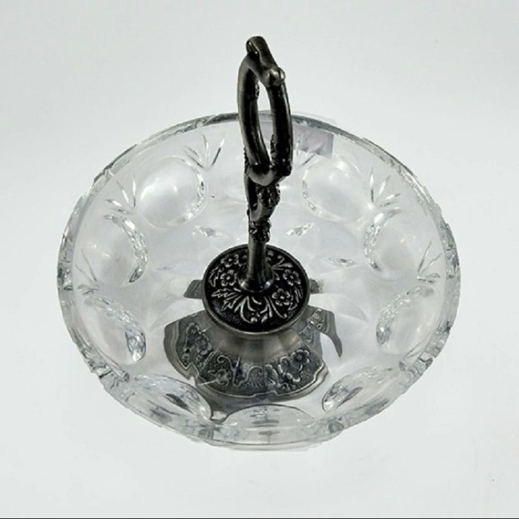 “شکلات خوری بلور پایه پیوتر کد 1254” از دو قسمت تشکیل شده است. ظرف اصلی بلور با ضخامت و استحکام مناسب که به زیبایی تراش خورده است. و پایه ای از جنس پیوتر با نقوش و طرح های زیبا که حالتی کلاسیک به ظرف می بخشد. آلیاژ پیوتر که به نام مسوار هم شناخته میشود ترکیبی است از مس و قلع و رنگی بین زرد و مسی دارد. از این رو بسیاری از وسایل خانگی و تزیینی از این آلیاژ ساخته می شود. از دیگر ویژگی های مهم این آلیاژ ضد زنگ بودن آن است.برای دیدن انواع ظروف پیوتر در فروشگاه پرنس هوم بر روی کلمه ی “ پیوتر ” کلیک کنید.