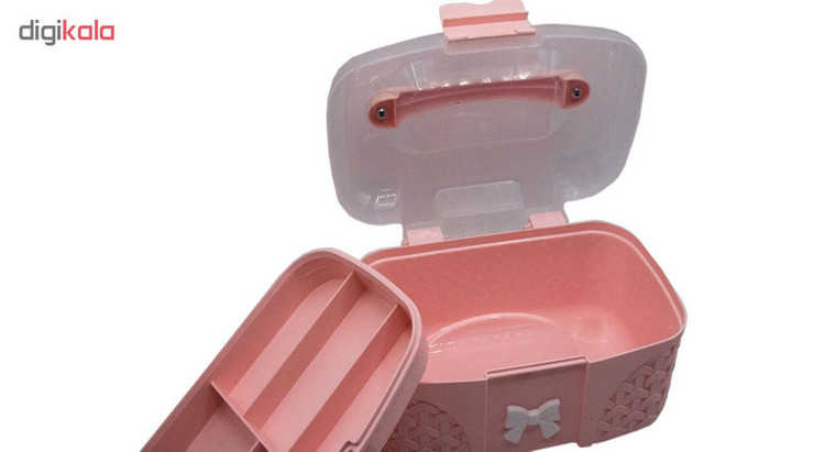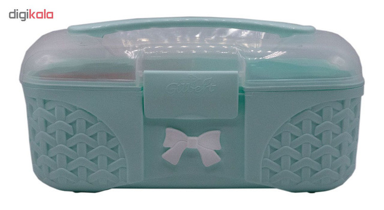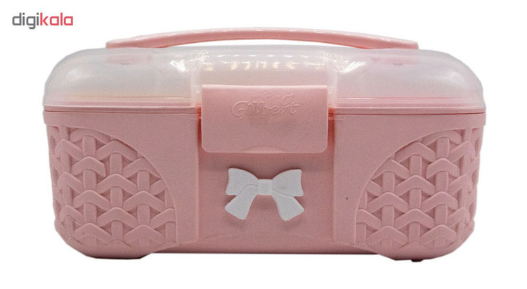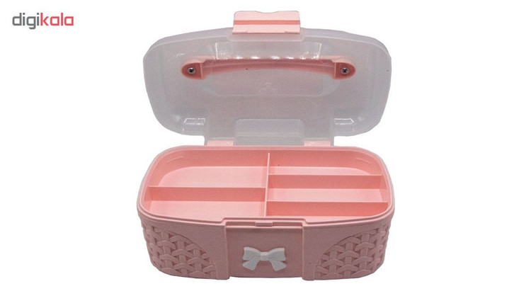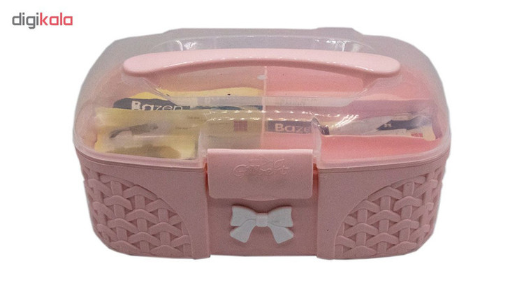 جا نخ و سوزن، دارای درب قفلی، قابلیت قرارگیری قیچی در کف محصول، دارای مقسم در سینی جهت تفکیک آسان نخ و سوزن، از یکدیگر تهیه شده از بهترین نوع مواد اولیه