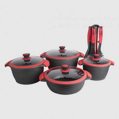 "سرویس قابلمه 15 پارچه سرامیکی یونیک کد 8765" یک سرویس شامل تابه، قابلمه و کفگیر و ملاقه است که نیاز های پخت و پز آشپزخانه شما را پوشش می دهد. دسته های قابلمه های این سرویس از جنس بدنه و با روکشی عایق حرارت و نسوز هستند. درب ها از شیشه با لبه لاستیکی هستند مه به خوبی روی ظرف کیپ میشوند. این ظروف در کف دارای یک لایه ی چدنی برای پخش یکنواخت حرارت است. این کفی باعث میشود در هنگام آشپزی با سوختن یک طرف غذا و نپختن طرف دیگر مواجه نشوید.