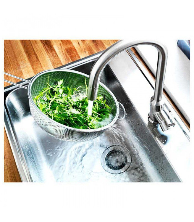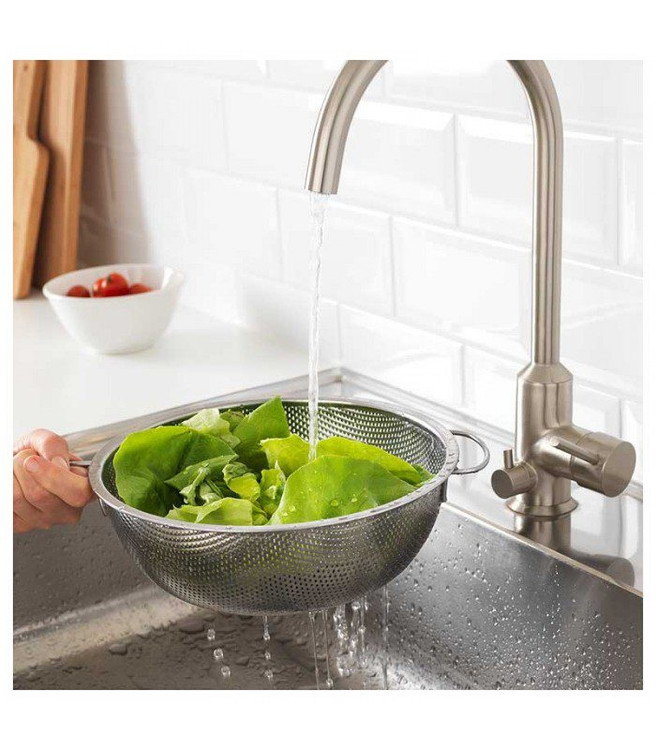 آبکش تمام استیل ایکیا IKEA-IDEALISK کاربرد های گوناگونی دارد. این آبکش تماما از استیل ضد زنگ ساخته شده. میتوانید از آن برای شستشوی مواد غذایی، الک کردن آرد و پودر قند برای تهیه ی شیرینی جات و یا بیرون آوردن غذا های سرخ کردنی از روغن استفاده کنید.
