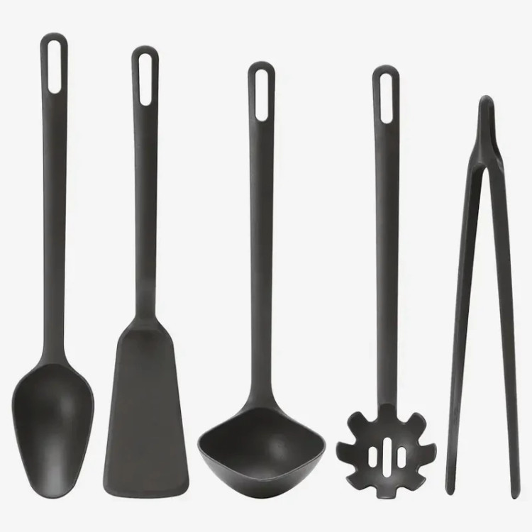 سرویس ابزار آشپزی ایکیا IKEA-FULLÄNDAD شامل 5 عدد ابزار آشپزی تفلون است. این ابزار از پلاستیک پلی آمید تقویت شده ساخته شده اند و میتوانند تا 220 درجه سانتی گراد دما را تحمل کنند. این ابزار برای استفاده هنگام کار با ظروف نچسب مناسب اند.