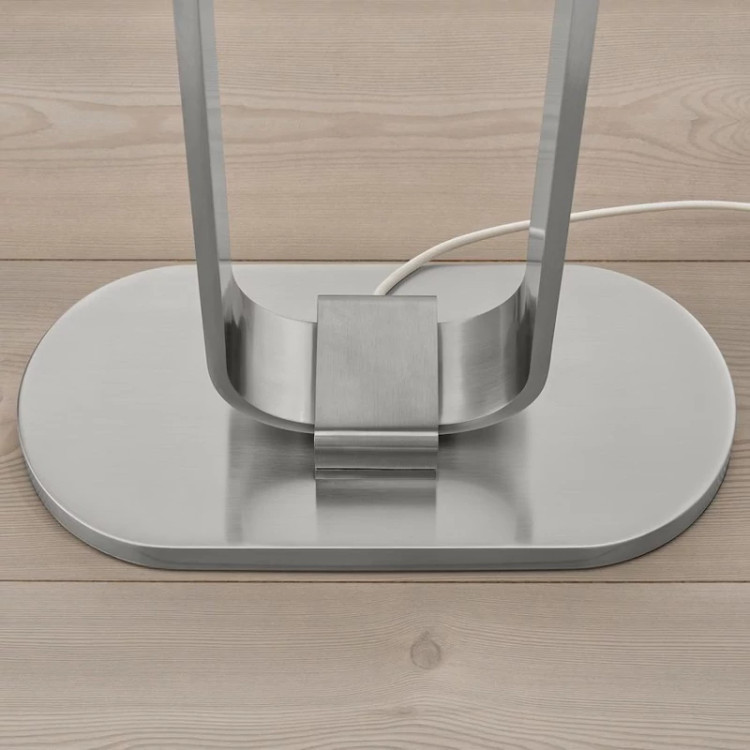 آباژور ایستاده IKEA-UPPVIND چراغ ها و آباژور ها فضای خانه را زیباتر و نور را در گوشه گوشه ی خانه پخش میکنند. پایه و میله آن از فولاد با پوشش نیکل اندود نقره ای براق است که مقاومت بالایی را دارد . این اباژور که نور پراکنده ای به سمت پایین می دهد برای پخش نور زیاد در اطراف اتاق خوب است نور ملایم و بدون تابش نوری را فراهم میکند که برای چشمان شما بسیار راحت است .این آباژور زمینی محکم که به شکل یک چنگال تنظیم براق روی ان سایه ای باریک و بیضی شکل است چشم ها را به خود جلب میکند و نوری ملایم و تزیینی را در هر کجا که ان را انتخاب کنید پخش می کند .