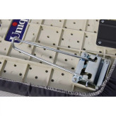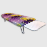 صفحه زیرین این میز مشبک ایت و اجازه در شدن بخار را میدههد تا سطح میز خیس نشود. این صفحه با یک اسفنج و روکش پارچه ای پوشیده شده تا اتو زدن را هر چه بیشتر راحت کند. صفحه کناری میز فلزی و برای قرار دادن اتو است.