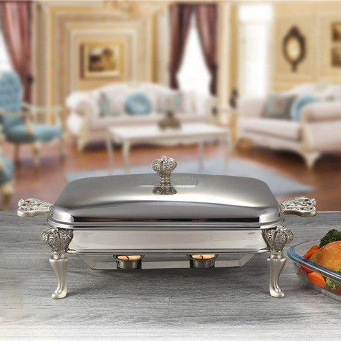 یونیک سوفله خوری امپراطور خارجی مستطیل 2 لیتری کد 3837ظروف سوفله خوری در ابتدا برای سرو نوعی کیک به نام سوفله استفاده می شد. این نوع کیک نیاز داشت تا در هنگام سرو گرم باشد تا بتواند پف خود را حفظ کند. به همین دلیل امروزه به ظروفی که دارای وارمر (جای شمع) در زیر غذا هستند سوفله خوری می گویند. ین ظروف مناسب برای سرو انواع سوپ، آش، خوراک هایی از قبیل کباب، جوجه، مرغ و ماهی هستند. به خصوص در مهمانی هایی که نیاز دارید مدتی قبل از حضور مهمانان در سر میز ظرف ها و غذا ها به طور کامل چیده شوند؛ این وقفه مینتواند باعث سرد شدن و به اصطلاح ار دهن افتادن غذای شما شود. با وجود جای مخصوص شمع در زیر سوفله خوری و قراردادن یک شمع کوچک در زیر غذا خیالتان از بابت گرم ماندن غذا راحت است. ظروف سوفله خوری بر اساس کاربرد آنها در اشکال و اندازه های گوناگون تولید میشوند. "یونیک سوفله خوری امپراطور خارجی مستطیل 2 لیتری کد 3837" ساخته شده از ظرف پیرکس فرانسه داخلی برای قرار دادن غذا و بدنه و درب از جنس استیل ضد زنگ 10-80 درجه یک. مناسب برای سرو انواع غذا به صورت سرد و گرم. زیر این ظرف دو جا شمعی تعبیه شده و گرمای کافی برای گرم نگه داشتن انواع غذا ها را تامین میکند. بدنه براق و دسته های زیبای این محصول ظاهری بسیار لوکس و مناسب جشن ها و تشریفات خاص شما دارد.کالکشن امپراطور سری سوفله خوری های امپراطور، از جمله طراحی خاص سلطنتنی در محصولات گرم نگهدارنده ظروف است. این کالکشن که تماما از جنس استیل بوده و ظروف داخل آن از جنس پیرکس است. که میتوان ظروف را به صورت جداگانه داخل فر و ماکروفر و حتی روی اجاق گاز قرار دهید. همچنین جنس بدنه از استیل با کیفیت ضد زنگ بوده و از زنگ زدن و یا سیاه شدن رنگ بدنه خیالتان راحت باشد. سری امپراطور برند یونیک ساخت کشور چین بوده و از کالکشن های قدیمی و پر فروش این شرکت به حساب می آید. این کالکشن دارای ظروف سوفله خوری بیضی و مستطیل شکل در 3 سایز 1/5 ،2،3 لیتری و دارای وارمر قهوه، سوپ خوری، سالاد خوری و ست چای خوری و سینی است. در پایین صفحه میتوانید سری امپراطور این شرکت را مشاهده کنید. درباره برند یونیکیونیک برندی شناخته شده در زمینه لوازم آشپزخانه در ایران می باشد که در چندین سال اخیر مورد استقبال خانواده های ایرانی قرار گرفته است .این شرکت که محصولات خود را تحت لیسانس کشور انگلیس در چین تولید میکند ، سعی کرده است تا با طراحی مدرن و مورد نیاز خانواده ها و با بهترین کیفیت ممکن ، تولیدات خود را روانه بازار کند . از جمله مهم ترین ویژگی شرکت یونیک ، قیمت مناسب در مقایسه با برند های کرکماز و زولینگن و … و همچنین خدمات پس از فروش مناسب در ایران اشاره کرد. با توجه به محصولات مشابه داخل بازار، خریداران گرامی حتما به لوگوی شرکت unique بر روی محصول دقت کنند. محصولاتی که زیر برند یونیک ،نام کشور و یا High Quality درج شده است فاقد گارانتی و محصولات شرکتی یونیک نمی باشند.