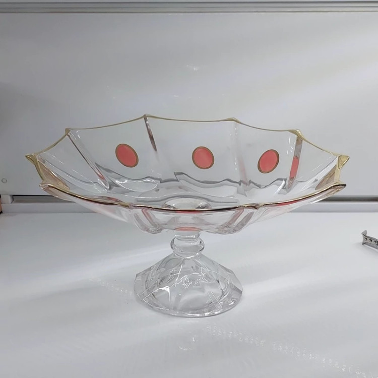 میوه خوری کریستال پایه دار لب طلایی قرمز پرنس هوم