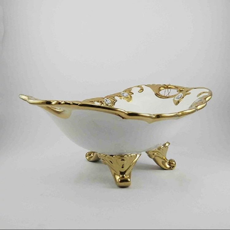 یونیک سرامیک طلایی طاووسی میوه خوری پایه دار کد 1050