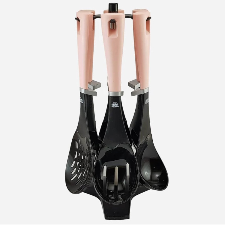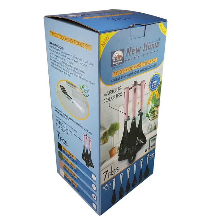 مجموعه سرویس کفگیر ملاقه 7پارچه نیوهوم شامل 6 ابزار آشپزی مورد نیاز در آشپزخانه است. این ابزار روی یک پایه سوار میشوند تا دسترسی به آن ها راحت تر باشد. هر 6 ابزار از مواد مقاوم در برابر حرارت و مناسب برای آشپزی با ظروف نچسب ساخته شده اند تا از ایجاد خط و خش در ظروف جلوگیری کنند. این ست شامل: