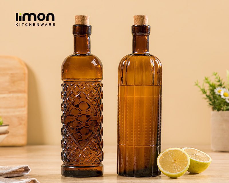 بطری آبلیمو خوری درب چوب پنبه ای قهوه ای لیمون کد 2119