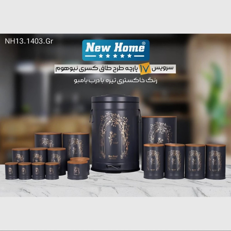 سرویس آشپزخانه 17 پارچه نیوهوم مدل طاق کسری بامبو کد NH13-1403-GR