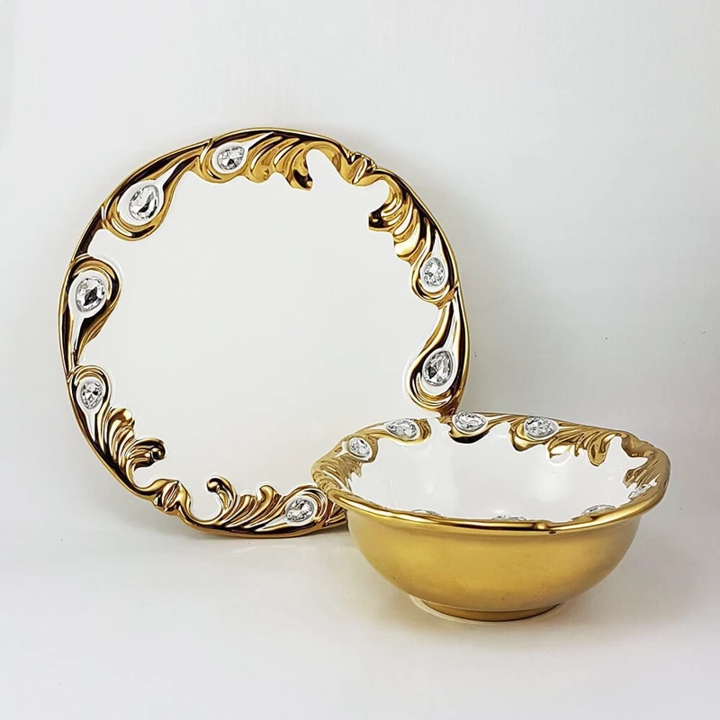 وجود تزیینات بسیار زیبا، دسته ها و مجسمه ها و رنگ خاص طلایی این سری را مناسب مهمانی ها، مراسم و تشریفات خاص شما میکند.