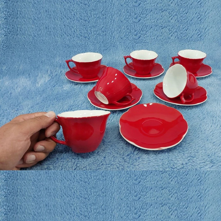 ست فنجان و نعلبکی چینی مقصود مدل نیلوفری قرمز