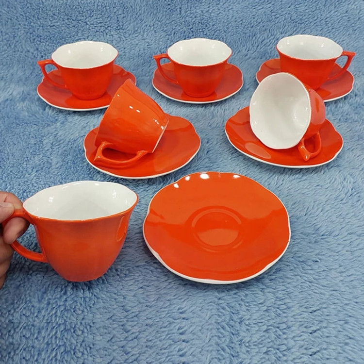 ست فنجان و نعلبکی چینی مقصود مدل نیلوفری نارنجی