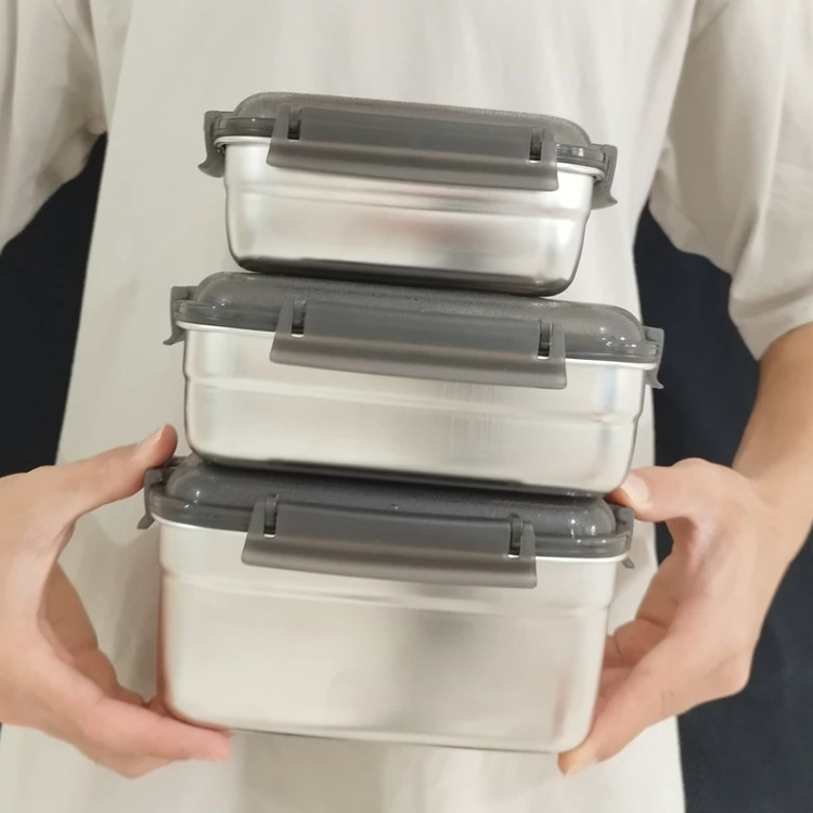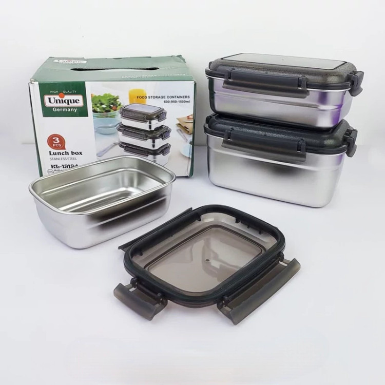 ظرف غذا استیل مستطیلی یونیک 3 سایز یک وسیله کاربردی برای نگهداری و حمل غذا است. از آنجا که متریال ساخته شده برای این ظروف از جنس استیل ضد زنگ بوده و خاصیت اصلی استیل بهداشتی و سالم نگه داشتن مواد غدایی است. به همین خاطر استفاده از لانچ باکس های استیل هم برای محل کار و هم ظرف غذای مدرسه بسیار پرطرفدار می باشد. این محصول دارای 3 قسمت با اندازه های مختلف است. بخش بزرگتر ظرف می تواند حدود 1.5 لیتر غذا را در خود جای دهد و مناسب برای خورش های مایع یا سوپ هاست. بخش متوسط ظرف می تواند حدود 950 میلی لیتر غذا را در خود جای دهد و مناسب برای سالاد ها یا خوراک های خشک است. بخش کوچکتر ظرف می تواند حدود 600 میلی لیتر غذا را در خود جای دهد و مناسب برای میوه ها یا دسر هاست. این ظرف دارای درب های محکم و بسته بندی هوشمند است که جلوی نشت یا ریختن غذا را می گیرد. این ظرف همچنین قابل شستشو در ماشین ظرفشویی است و دارای عایق حرارتی است که غذا را تا چند ساعت گرم نگه می دارد.