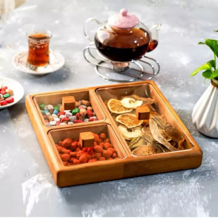 جعبه پذیرایی یا تی بگ چوبی 3 خانه مدل 11023