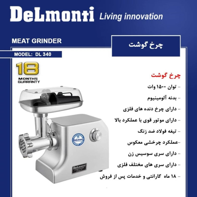 چرخ گوشت 1500 وات بدنه آلومینیوم دلمونتی مدل DL-340 با ضمانت 18 ماهه با ارسال رایگان