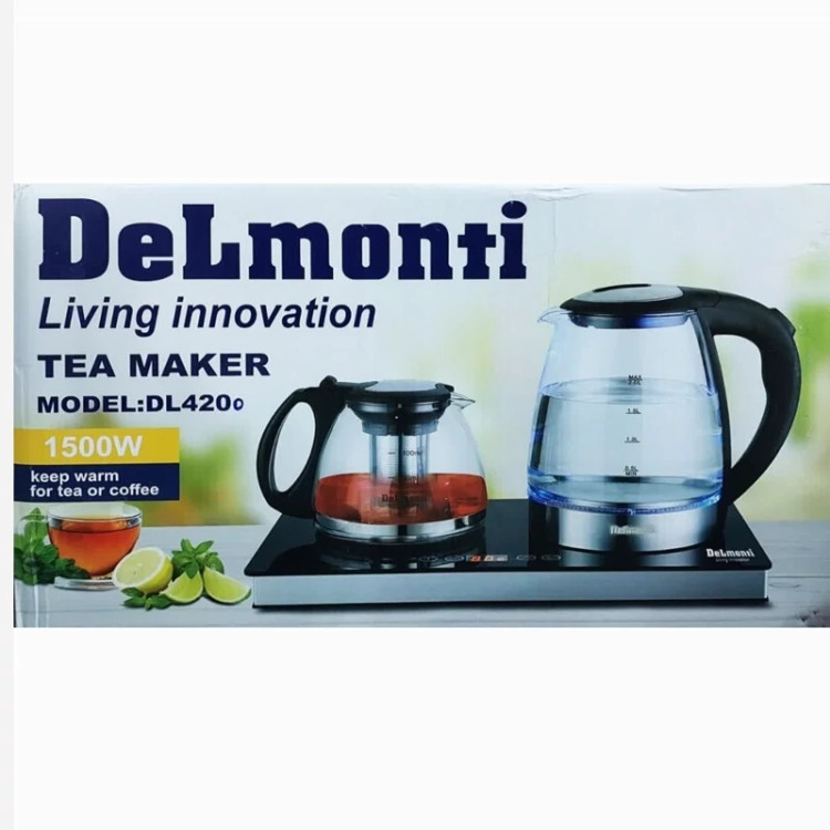 چای ساز صفحه لمسی دلمونتی مدل DL420 از محصولات تولید شده تحت لیسانس شرکت ایتالیایی دلمونتی می باشد که در طرح و شکلی زیبا و همراه با کیفیتی عالی روانه بازار فروش لوازم خانگی و لوازم آشپزخانه شده است. چایساز دلمونتی DL 420 از سه قسمت تشکیل شده است که به تناسب نیاز مواد متفاوتی ساخته میشوند.کتری، قوری و صفحهی زیرین که قوری و کتری روی آن سوار است. کتری و قوری از جنس شیشه میباشند تا بتوان از میزان آب و چای باقیمانده داخل آن ها باخبر شد. کتری مندرج است و شما می توانید حجم آب داخل آن را اندازهگیری کنید