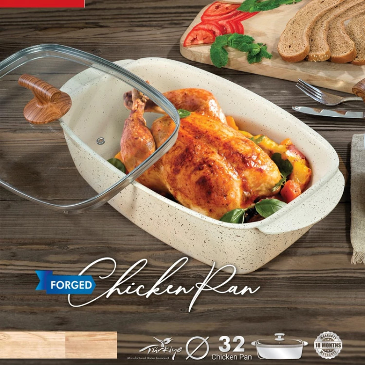 مرغ خوری اویز با طراحی گود کاملا مناسب برای طبخ انواع مرغ است. این تابه دارای روکش نچسب بادوام و مرغوبی بوده که علاوه بر سهولت در پخت و پز موجب گردیده تا تمیز کردن و شست و شوی ظرف نیز پس از استفاده راحت باشد. همچنین درب تابه اویز از جنس شیشه ای و مقاوم در برابر حرارت بوده و با قرار دادن آن روی تابه باعث می شود مواد غذایی درون آن به خوبی مغز پخت شوند، درضمن وجود دریچه خروج بخار روی درب مانع از سر ریز شدن محتویات درون تابه هنگام پخت می گردد.