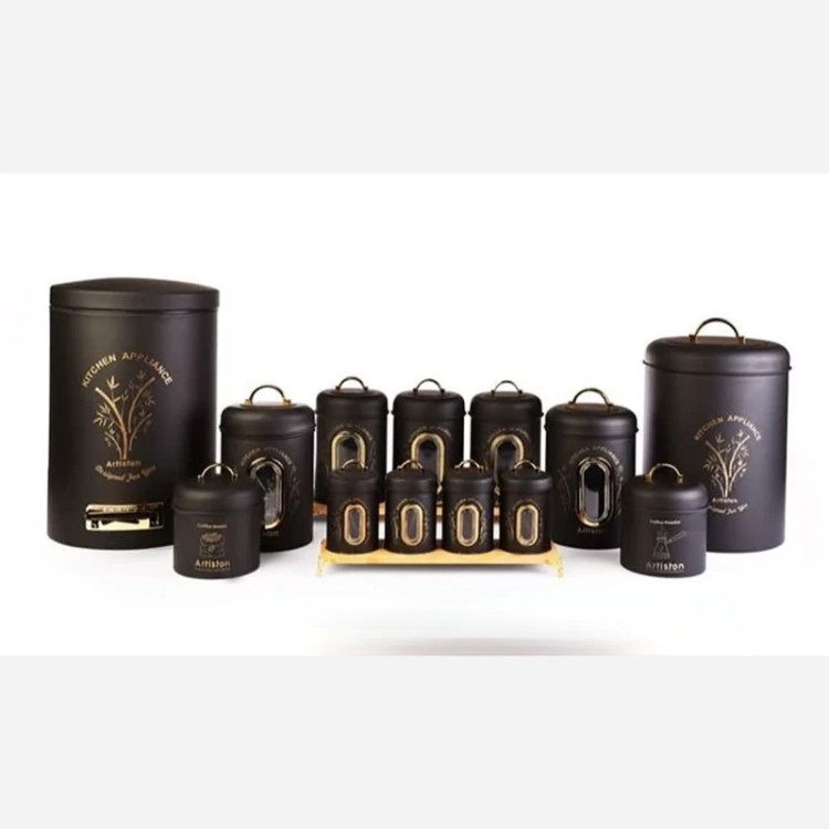 وجود بانکه، قوطی و یا سطل مخصوص برای قند ، شکر ، چای ، انواع حبوبات و نبات ، سطل برنج و سطل زباله می تواند برای سامان دادن به فضای کانتر و کابینت و همچنین فضای کلی آشپزخانه از جمله مواردی باشد که خانم های خانه دار به آن توجه نموده و به دنبال تهیه آن باشند.سرویس 15 پارچه آرتیستون مدل ورونا یکی از محصولات موجود در بازار بشمار می رود که علاوه بر کامل و مناسب بودن این ست برای جهیزیه،در رنگ های متنوعی نیز موجود بوده که آن را می توان در هر فضایی ست نمود.به لحاظ تعداد پارچه نیز این محصول سبد کاملی را در اختیار مصرف کننده قرار می دهد تا دیگر نگران خرید اقلام جایگزین نباشد.جنس بدنه این محصول ساخته شده از فلز با روکش الکترواستاتیک بوده و درب های آن از چوب ساخته شده که دور تا دور درب توسط یک واشر پلاستیکی پوشانده شده تا به خوبی بر روی محصول قرار گرفته شده و چفت شود.