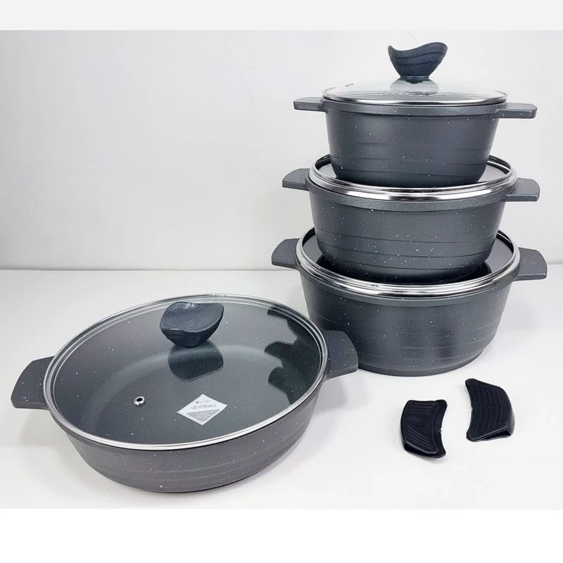 سرویس قابلمه گرانیتی 10 پارچه پیلو رنگ طوسی با ارسال رایگان