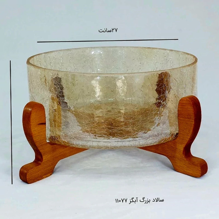 کاسه سالاد و میوه خوری پایه چوبی بزرگ طرح آبگز کد 11077