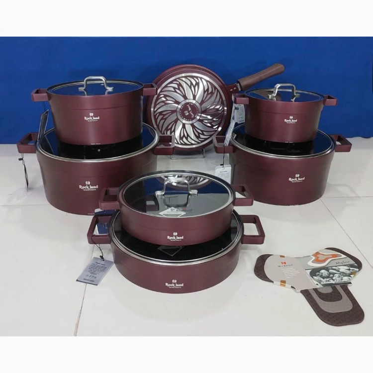 سرویس قابلمه راکلند با پوشش بیرون قابلمه رنگ سیلیکونی کوره ای مقاوم در برابر حرارت می باشد پوشش داخلی قابلمه گرانیت سنگین فوق العاده با کیفیت می باشد قابل شستشو با دست ، ماشین ظرفشویی سرویس قابلمه راکلند شامل: قابلمه سایز 20 قابلمه سایز 24 قابلمه سایز 28 قابلمه سایز 32 تابه دو دسته سایز 28 تابه دو دسته سایز 24 تابه رژیمی سایز 32 همراه سیلیکون 4 پارچه با ضمانت 18 ماهه با ارسال رایگان به سراسر کشور وضمانت تحویل سالم کالا درب منزل ساخت ایران