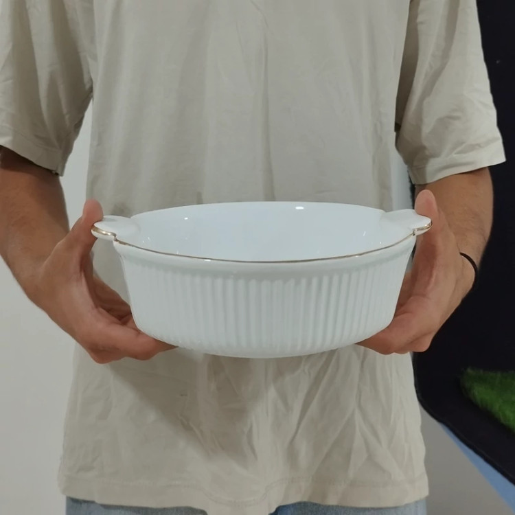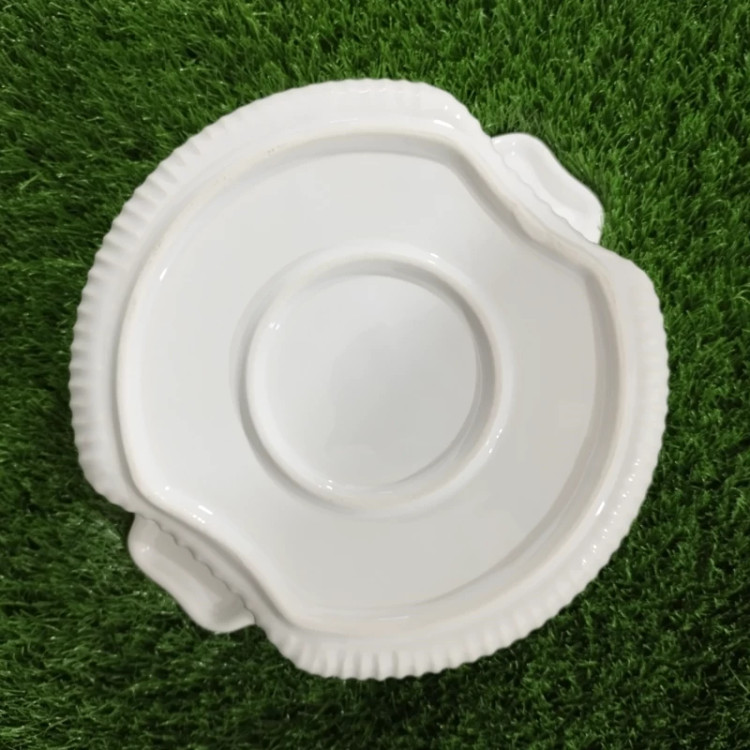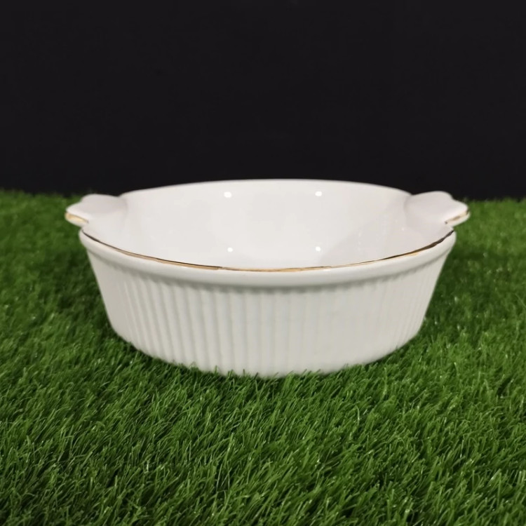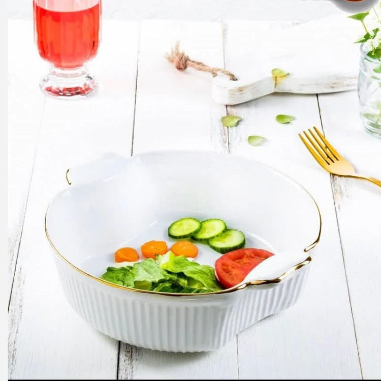 تابه گرد لب طلا سرامیکی مدل شیاردار از جذاب ترین وسیله هایی است که در میهمانی می توانید به عنوان ظرف پذیرایی استفاده کنید. این محصول از جنس و با لعابی سفید رنگ پوشیده است. شما می توانید از این تابه رابرای سرو غذا استفاده کنید.
