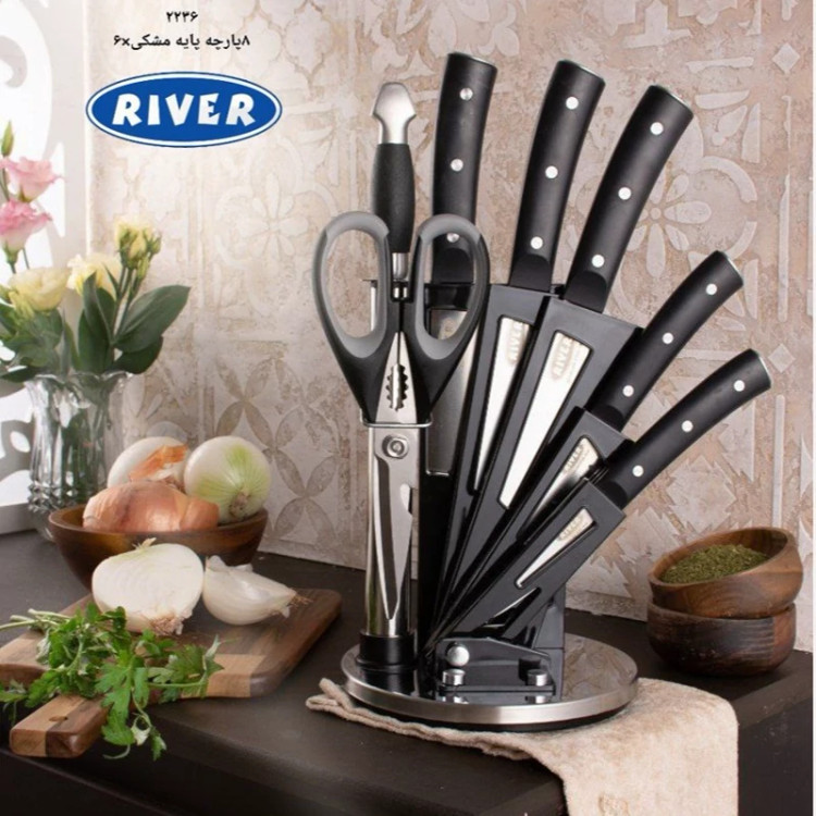 ست کارد و ساطور 8 پارچه استیل ریور مشکی کد 2236 با ارسال رایگان