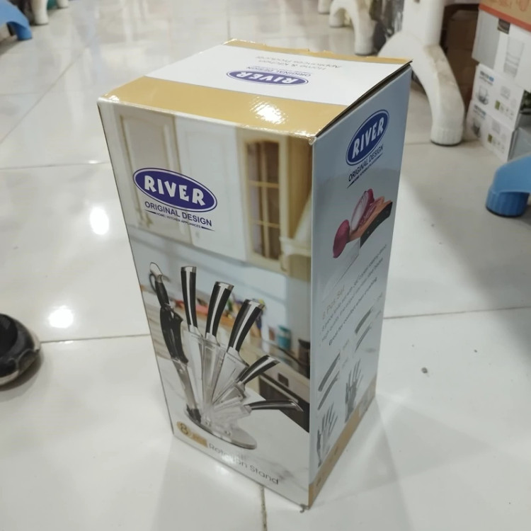 سرویس کارد و ساطور ریور کد 2236 با بدنه تمام استیل ضد زنگ و تیغه و دستگیره یک تکه رضایت خریداران بسیاری را به سمت خود جلب کرده است. این ست 8 پارچه شامل 4 عدد چاقو در سایز و کاربردهای مختلف، 1 عدد ساطور، 1 عدد قیچی آشپزی و 1 عدد سوهان مخصوص تیز کردن چاقوها می باشد که بر روی یک استند چرخان قرار می گیرند.