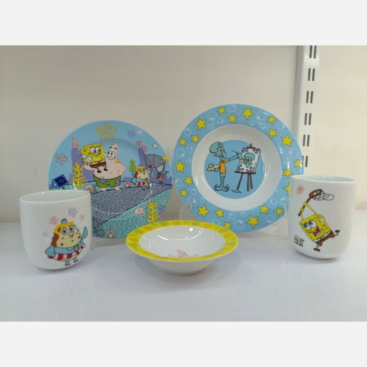 سرویس کودک 5 پارچه چینی زرین مدل باب اسفنجی