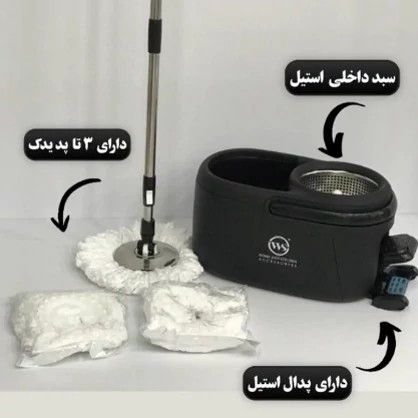 دارای چرخ زیر سطل ، پدال چرخشی جهت شستشو و ابگیری تی