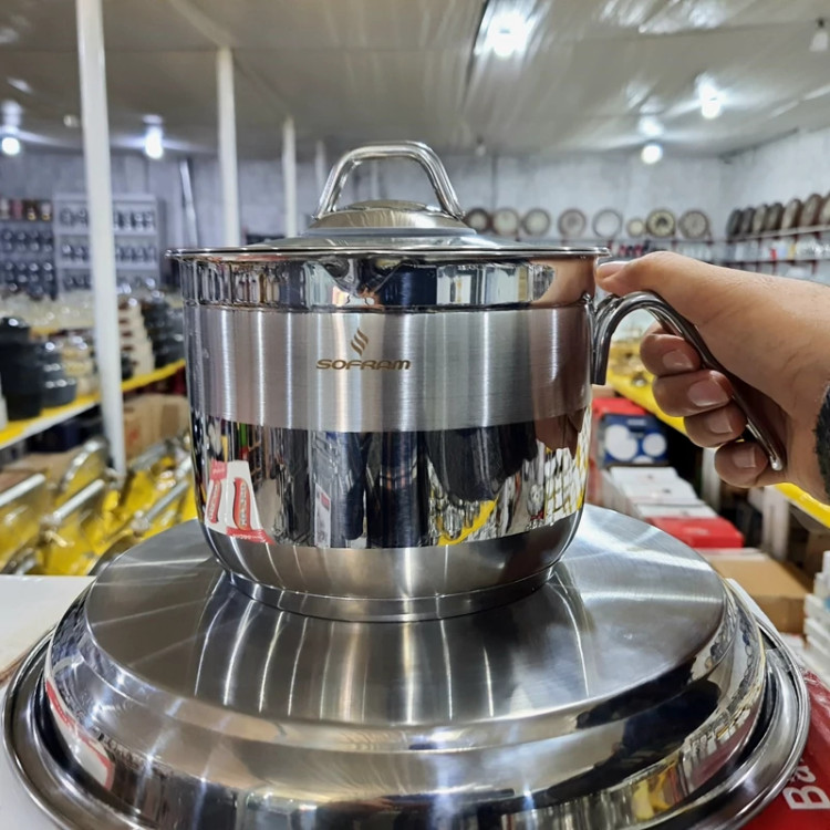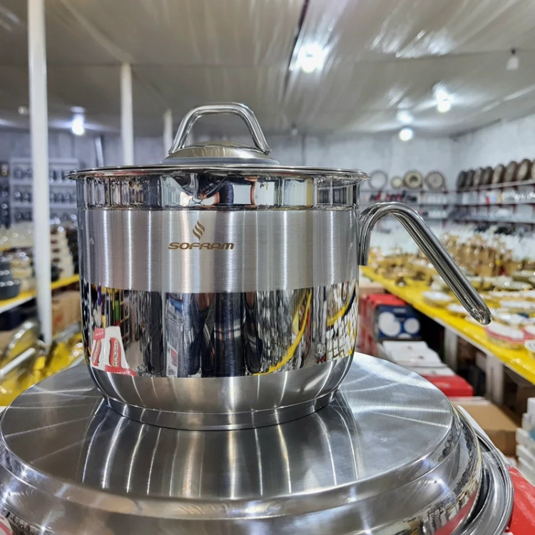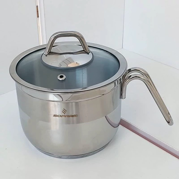 شیرجوش دسته بغل استیل سایز 16 سوفرام ترکیه SOFRAM درب دار