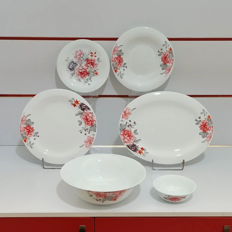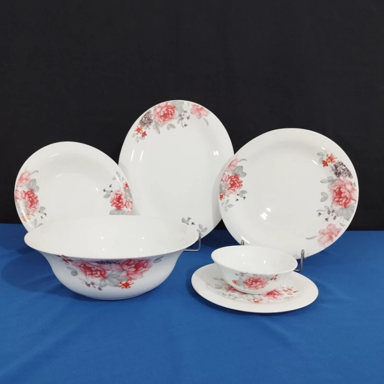 سرویس آرکوپال 26 پارچه مدل لادن طرح مهسان صورتی یک سرویس آرکوپال تولید ایران می باشد که با یک قالب جدید در طرح و نقشی بسیار زیبا به سبک سرویس های اوپال اسپانیایی تولید شده این ظروف قابلیت تحمل دمای بالایی را دارند به همین دلیل قابلیت قرارگیری در مایکروویو را دارا می باشند همچنین این ظروف قابلیت شستشو در ماشین ظرفشویی را نیز دارند این سرویس شامل: 6 عدد بشقاب تخت برنج خوری 6 عدد بشقاب گود خورش خوری 6 عدد پیش دستی دسر خوری 6 عدد پیاله ماست خوری 1 عدد دیس 1 عدد کاسه سالاد بزرگ می باشد که در یک بسته بندی بسیار زیبا و با دوام قرار میگیرد