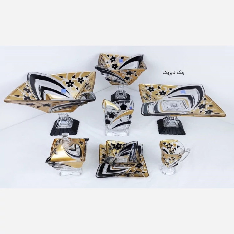 سرویس پذیرایی کریستال 24 پارچه کلمانتیس ژاپن کد 60 رنگ مشکی طلایی ارسال رایگان