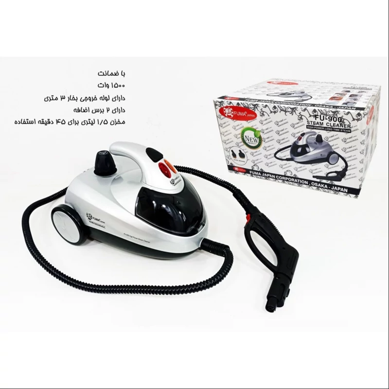 این محصول دارای طراحی شیک و مدرن است و اندازه مناسبی دارد که کار کردن با آن راحت است. fu-900 دارای توان مصرفی 1500 وات و فشار بخار آن 4 باراست و حجم مخزن آب آن نیز 1.5 لیتر است که مدت زمان بخاردهی طولانی دارد و به مدت 45 دقیقه می توانید با یک بار از آن استفاده کنید. 7 سری مخصوص همراه این بخارشو ارائه می شود که قابلیت تمیز کردن قسمت های مختلف از جمله شیشه، کفپوش، دیوار، سرامیک و... را فراهم می کند و محیطی تمیز و پاکیزه ای را برای شما به ارمغان می آورد. قابلیت های چند گانه این محصول این امکان را فراهم می کند تا در مدت کمی و بدون استفاده از وسیله ای دیگر تمامی قسمت های منزل را تمیز کرده و در زمان کمی به نتیجه مطلوبی برسید. طول سیم برق این بخارشو 2 متر است که شعاع کارکرد را بیشتر کرده و به آسانی می توانید مانور دهید و قسمت های بیشتری را تمیز کنید. همراه بخارشوی فوما 900 یک سری اقلام همراه از جمله پیمانه، قیف، دو عدد لوله رابط ، 7 سری مخصوص و 2 سری اضافی مسی ارائه می شود که با استفاده از آن می توانید قسمت های مختلفی را تمیز کنید. این دستگاه علاوه بر کارایی عالی که ارائه می دهد از طراحی خاصی نیز برخوردار است و از مواد باکیفیتی در طراحی بدنه آن استفده شده که بدنه ای محکم و بادوامی را ایجاد کرده است
