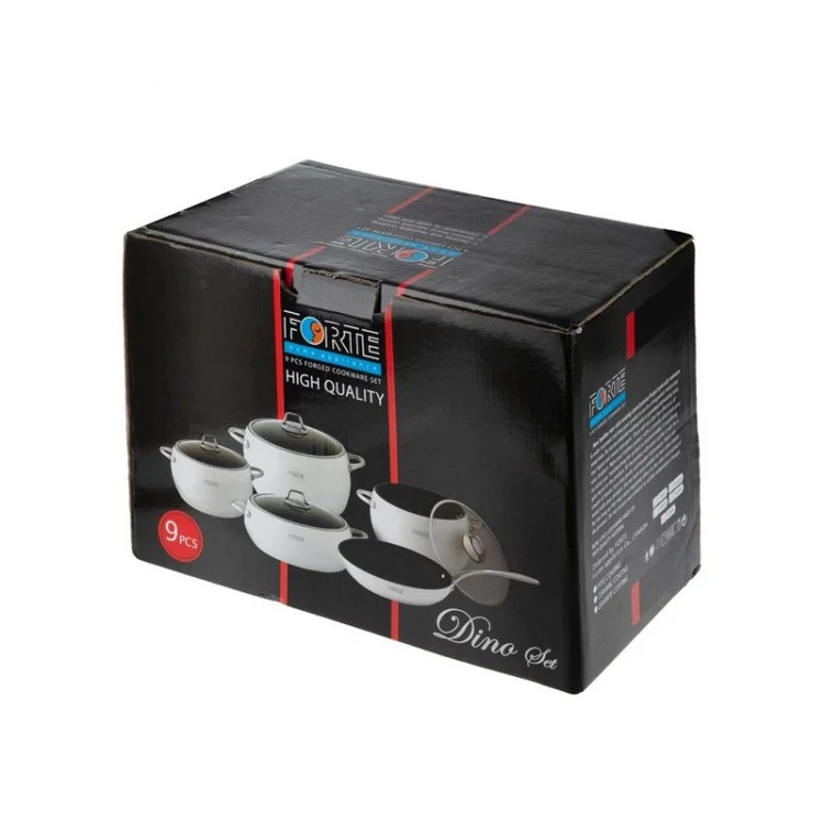 اگر به دنبال آشپزی سالم هستید یا رژیم غذای خاصی را دنبال میکنید، باید از ظروفی استفاده کنید که میزان مصرف روغن را به حداقل رسانده و کیفیت مواد غذایی را حفظ کنند. سرویس 9 پارچه فورته مدل دینو دارای 3 عدد قابلمه به قطرهای 26، 22 و 18 و یک تابه دو دسته به قطر 28 و یک تابه تکدسته به قطر 22 می باشد. بدنه محصول از شمش الومینیوم با خلوص بالا، به ضخامت پنج میلیمتری و به روش فورج تولید شده است. قطر بالای بدنه و همچنین نحوه تولید این محصول علاوه بر بالا بردن کیفیت بدنه در سطح استانداردهای جهانی، موجب نگهداشت بلند مدت گرما و توزیع یکنواخت گرما در محصول گردیده است. روکش نچسب این محصولات از جنس گرانیت می باشد و از نظر سختی حدودا ده برابر پوشش های تفلون، سختی دارد. استفاده از روکش گرانیت شرکت گریبلون آلمان که بدون سرب و کادمیوم و مواد شیمیایی مضر می باشد، پخت و پزی سالم و به دور از مشکلات گوارشی را مهیا می سازد. ویژگی منحصر به فرد پوشش گرانیتی این محصول، دوام بالا و مقاومت تا دمای 350 درجه سانتیگراد می باشد. این محصول تحت نظارت فورته کانادا تولید می شود. فورته برندی است که در سال 2006 میلادی فعالیت خود را با ثبت دفاتر تجاری در کانادا - امارات متحد عربی و ایران آغاز نمود و گستره وسیعی از محصولات با کیفیت شامل استیل، دایکاست با پوشش تفلون، گرانیت و سرامیک تولید می کند. این برند همچنین در حوزه های مختلف آشپزخانه نظیر سرویس های چاقو، آبکش و ... نیز با کیفیت مثال زدنی تولیداتی دارذ