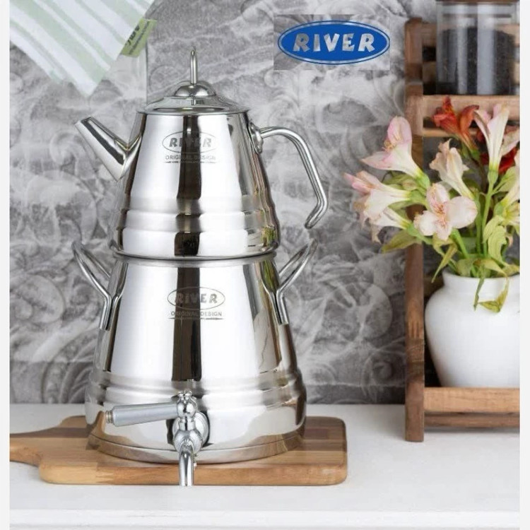 ست کتری قوری ریور طراحی مدرنی دارد و تمام نیازهای روزانه را برآورده می کند استفاده کتری و قوری استیل به حفظ طعم و عطر اصلی چای و قهوه کمک می کند. استیل علاوه بر حفظ عطر و طعم نوشیدنی، پایداری بالایی در برابر حرارت و حرارت غیرمستقیم دارد و گذر زمان تاثیر خاصی در کیفیت و ظاهر آن ندارد.