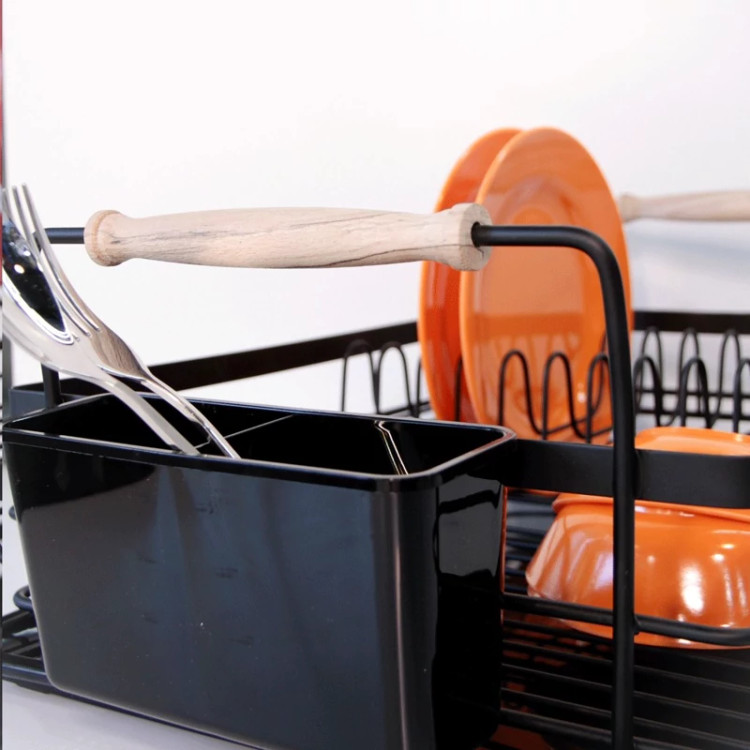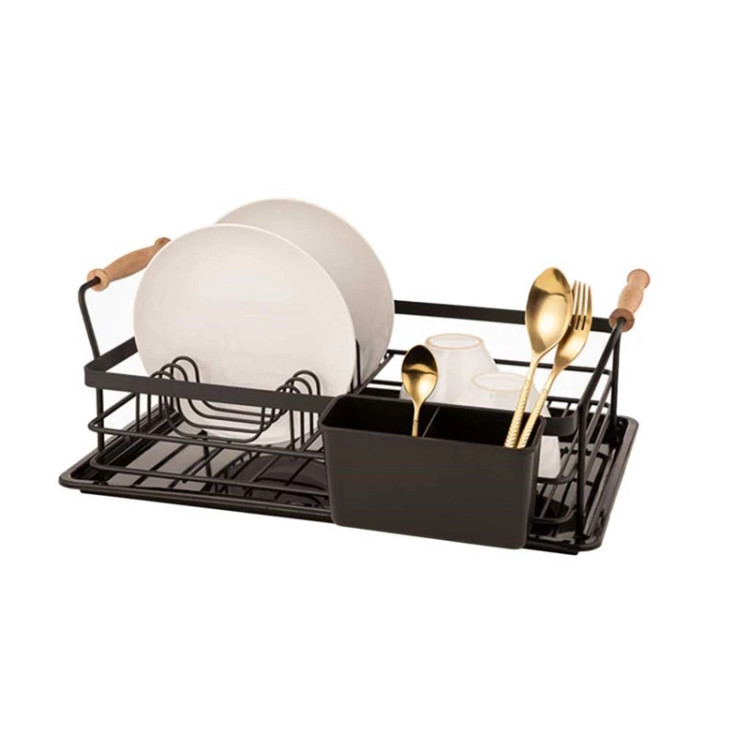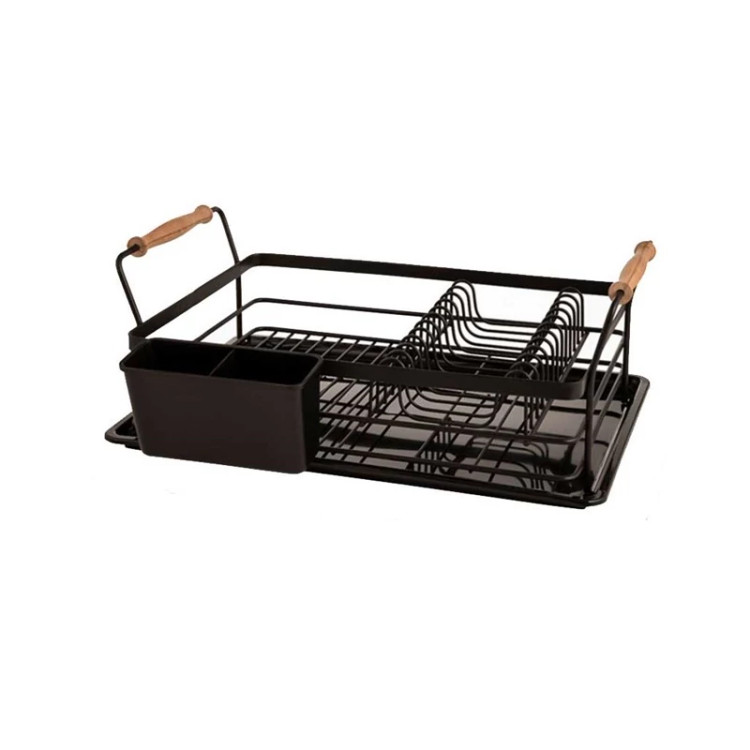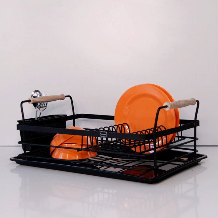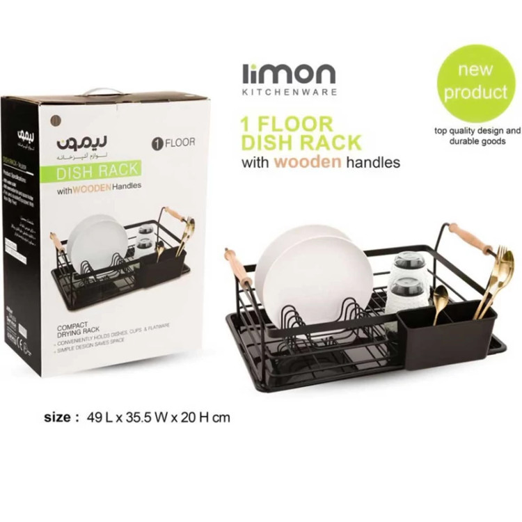 آبچکان یک طبقه دسته چوبی لیمون به دلیل جابه جایی آسان و قیمت مناسب یکی از پر طرفدارترین مدل های جاظرفی رومیزی می باشد. جنس فلزی و رنگ کوره ای این محصول استحکام و مقاومت آن را در برابر پوسیدگی و زنگ زدگی تضمین می کند. رنگ زیبا و براق این آبچکان فلزی در کنار دسته های چوبی آن را مناسب برای هر نوع آشپزخانه ای کرده است. سینی آبگیر پلاستیکی که در کف این آبچکان تعبیه شده است از لکه و رسوب شدن قطرات آب بروی سینک ها جلوگیری می کند و همچنین عملکردی شبیه به پایه های ضدلغزش دارد. این جاظرفی فلزی به صورت یک طبقه و با ابعادی برابر با 20 * 35.5 * 49 سانتی متر طراحی شده است، که به راحتی 12 عدد بشقاب بروی آن جای می گیرد و بخش مسطح آن برای کاسه ها، لیوان ها و موارد دیگر قابل استفاده می باشد. یک عدد جاقاشقی آویز نیز در کنار این آبچکان قرار داده اند که فضای 2 خانه آن برای تفکیک قاشق ها از ابزارهای تیزی مانند چنگال و چاقو بسیار مناسب می باشد.