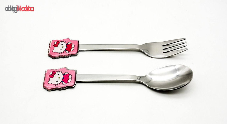 قاشق و چنگال کودک طرح کیتی دارای یک عدد قاشق و یک عدد چنگال بسته بندی کوچک و زیبا ساخته شده از استنلس استیل مقاوم در مقابل حرارت و سرما