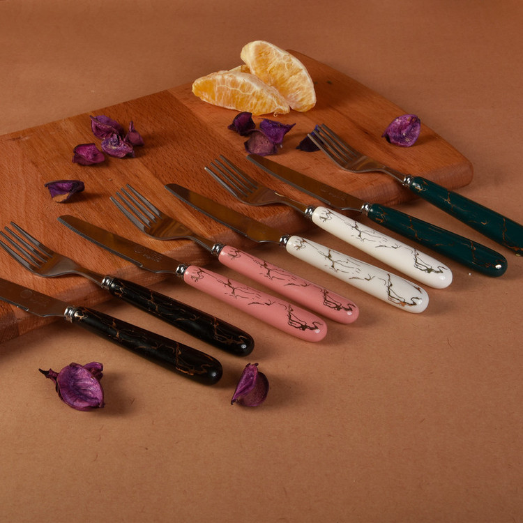 شامل 12 عدد کارد میوه خوری و 12 عدد چنگال میوه خوری-جنس از استیل ضد زنگ و سرامیک