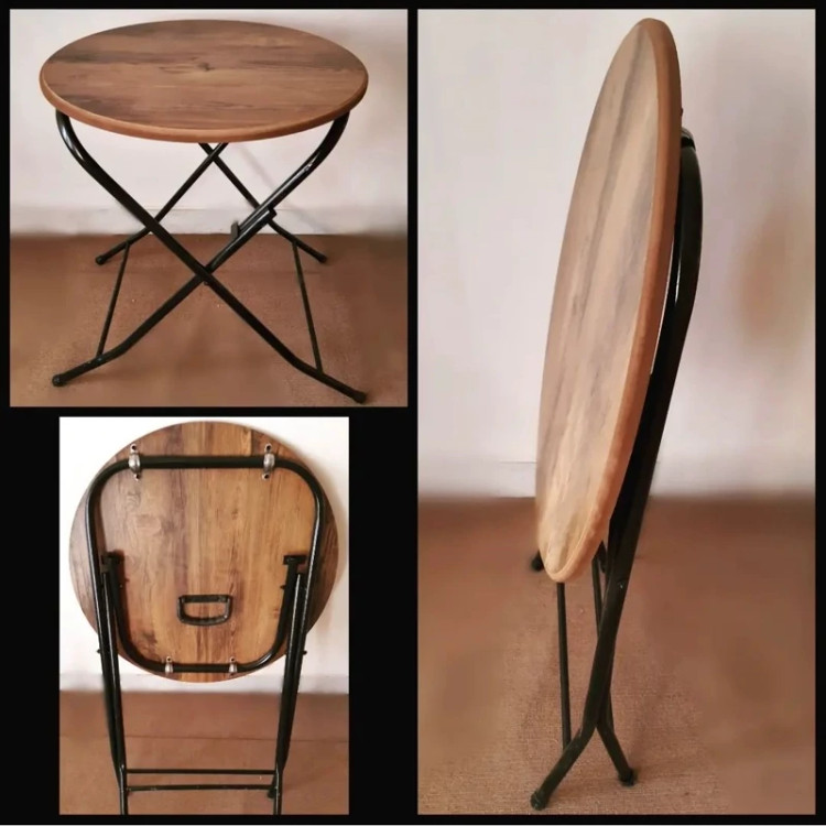 میز تاشو خاطره گرد سفری صفحه MDF براق قطر 70 سانتیمتر