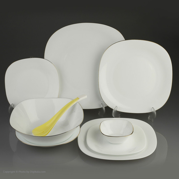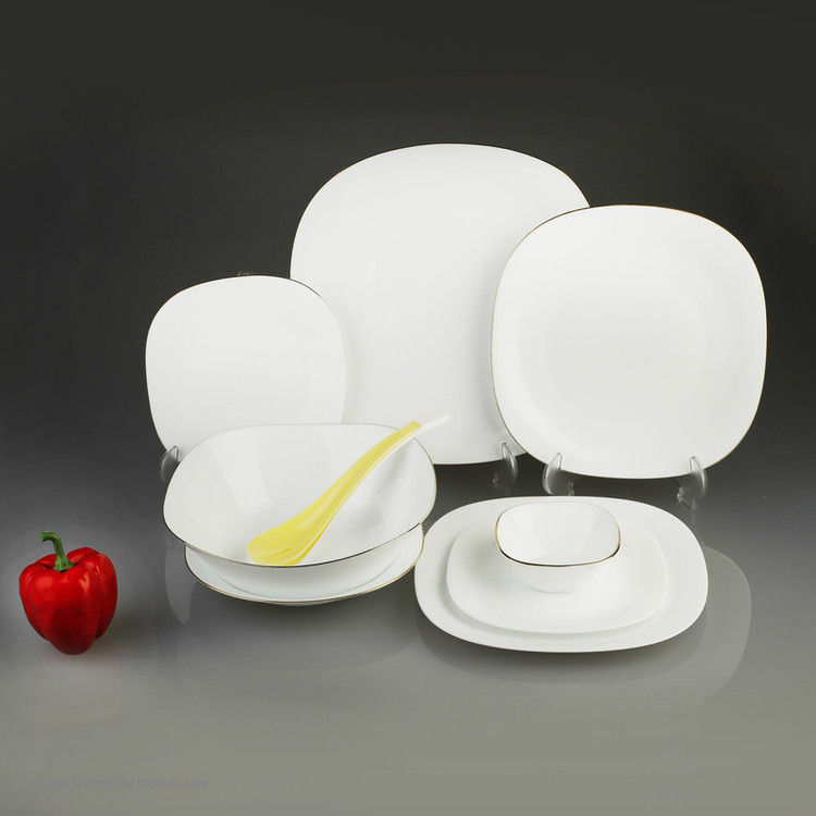 سرویس غذا خوری 26 پارچه دینو مدل ساده چهارگوش لب طلایی