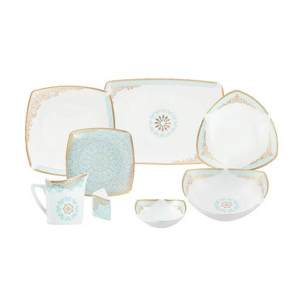 اقلام سرویس: ظرف سالاد , دیس , بشقاب غذاخوری , بشقاب خورشخوری , پیشدستی , نمکپاش و فلفلپاش , پیاله , ظرف سس