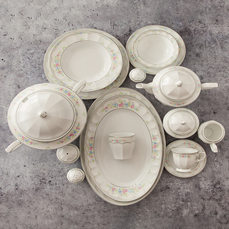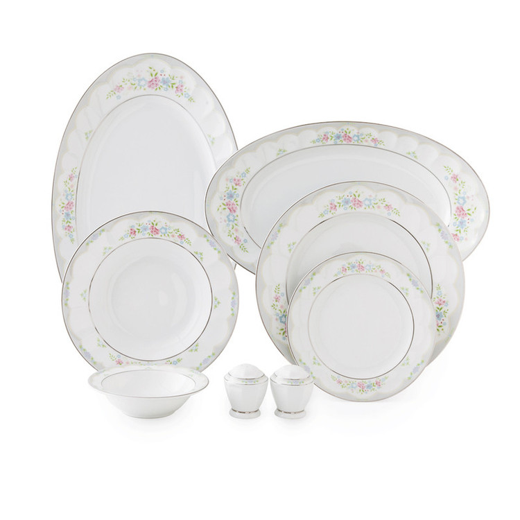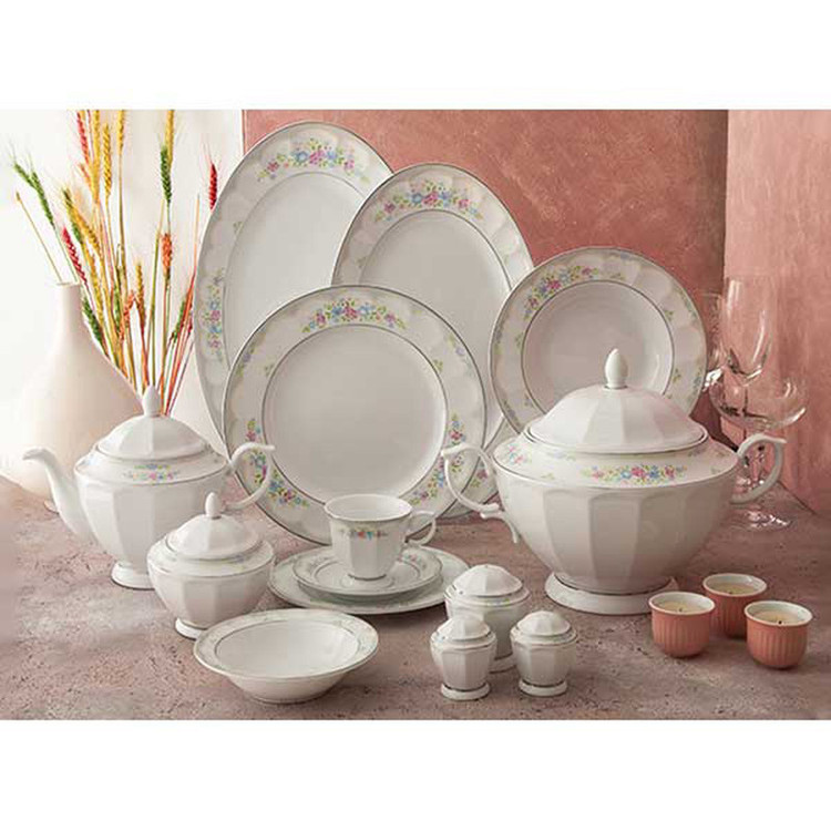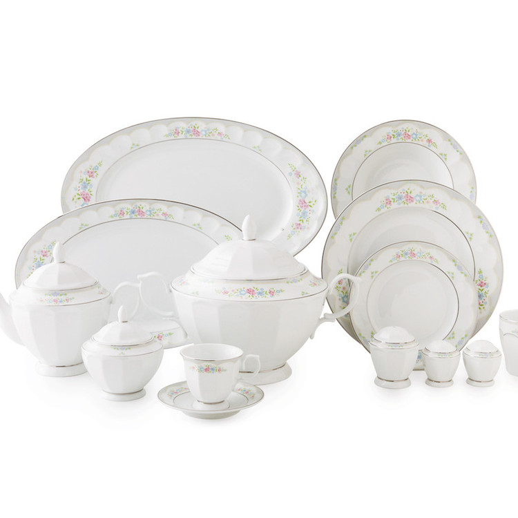 اقلام سرویس: سوپخوری , کاسه , ظرف سالاد , سالادخوری , دیس , بشقاب غذاخوری , بشقاب خورشخوری , پیشدستی , قوری چایخوری , فنجان , نعلبکی , قندان , شکرریز , نمکپاش و فلفلپاش , پیاله