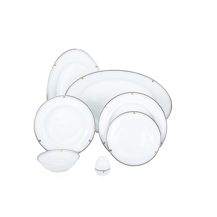 اقلام سرویس: دیس , بشقاب غذاخوری , بشقاب خورشخوری , پیشدستی , نمکپاش و فلفلپاش , پیاله