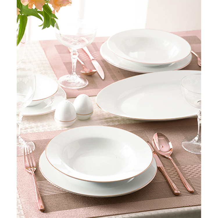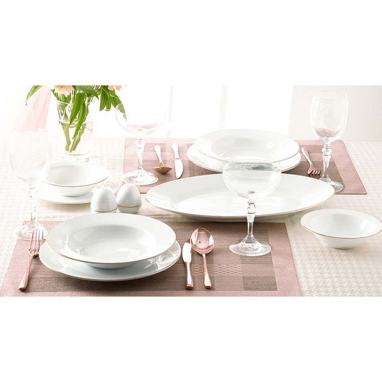 اقلام سرویس: سالادخوری , بشقاب غذاخوری , دیس , بشقاب خورشخوری , پیشدستی , نمکپاش و فلفلپاش