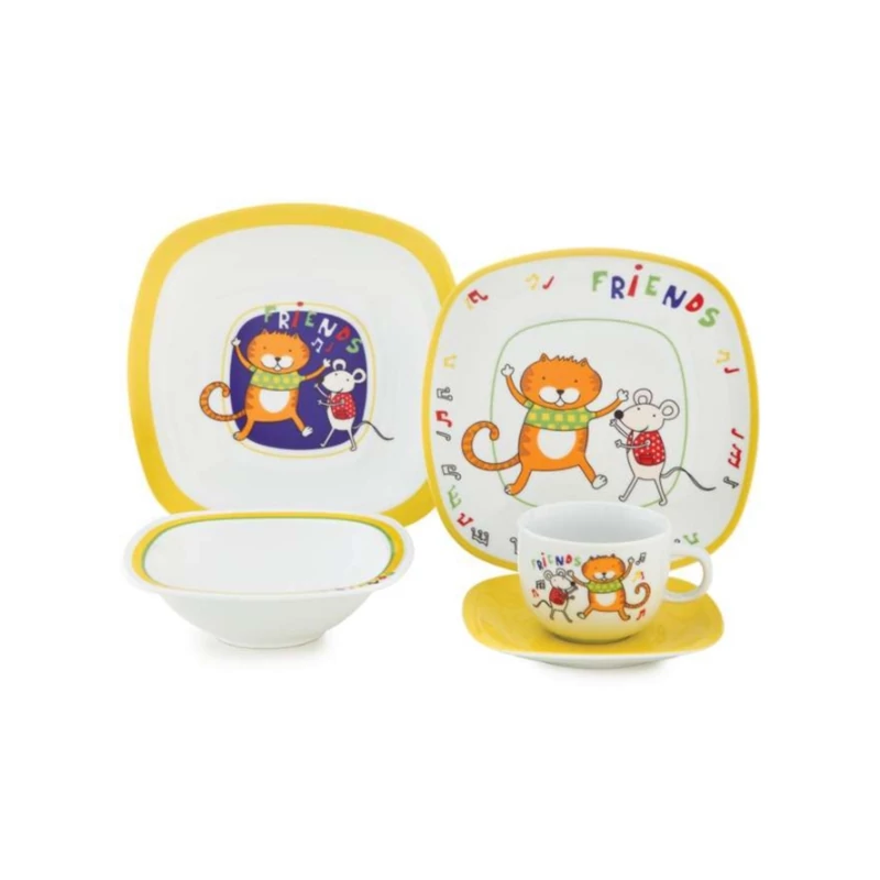 سرویس غذاخوری کودک 5 پارچه چینی زرین سری کواترو مدل دوستان