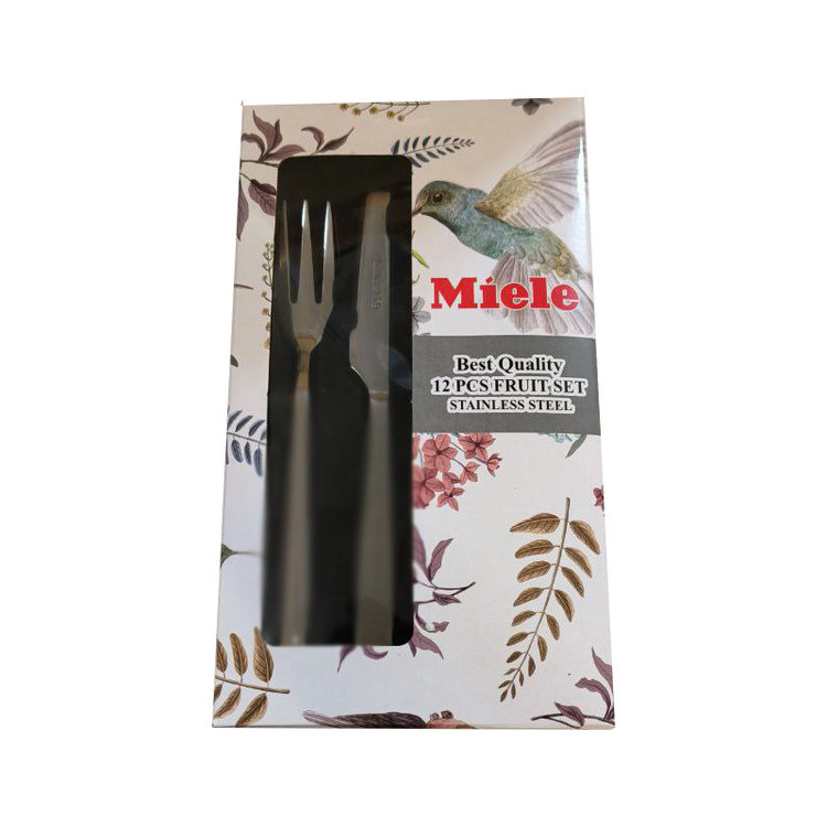 سایر توضیحات: شامل 6 عدد چنگال میوه و 6 عدد کارد میوه با استیل ضخیم و با کیفیت - طول کارد تقریبا 18 سانتی متر و طول چنگال حدود 15.5 سانتی متر - تیز و برنده-ضخامت استیل 2 الی 3 میلی متر