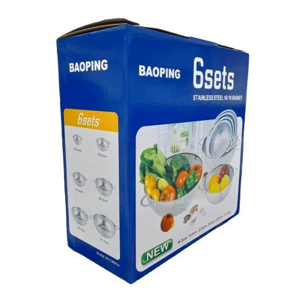 تعداد شش آبکش در سایزهای 16.5 سانتی متر 19.5 سانتی متر 22.5 سانتی متر 25.5 سانتی متر 28.5 سانتی متر 31.5 سانتی متر
